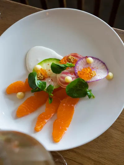 Décoration épurée et chaleureuse, tons naturels, cuisine ouverte sur la salle. Maja se prête aussi bien à des déjeuners animés qu'à des dîners plus feutrés, quelle que soit la saison.